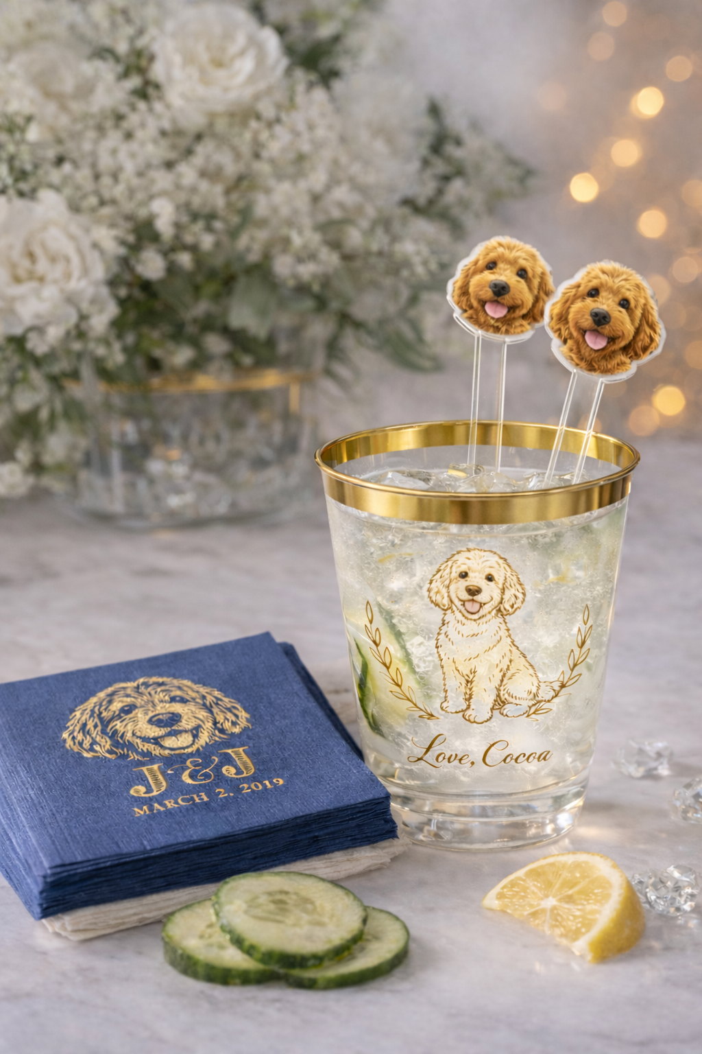Refined, personalized details that place your dog at the heart of your celebration.